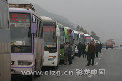 曲靖到勝境關高速是云南進出貴州西北的要道,也是宣威到曲靖、昆明的必經之路。前天晚上8點半,曲勝高速由于大面積結冰,不得不關閉。致使從前天開始到昨天的30多小時內,勞動力輸出大縣宣威、富源的班車都沒法發車,很多急于趕回曲靖、昆明上班的人員都滯留在家鄉。