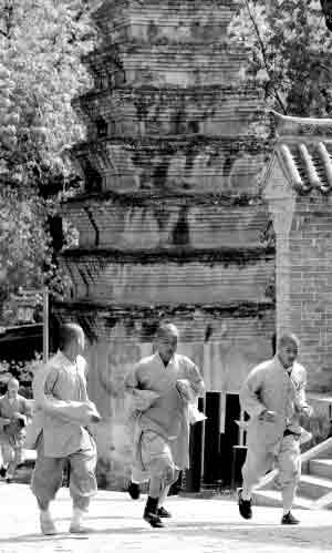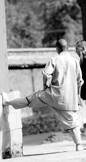 早來的游人們先是驚奇地看著這些穿著長袍短褂的孩子,接著便爭先恐后與他們合影,幾個害羞的小沙彌紛紛躲在了大哥哥身后。他們這是出來配合一個機構拍攝專題片的,隨著少林寺名聲的與日俱增,少林寺的武僧又有了新的江湖。