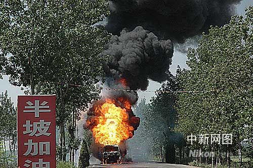 4日上午10時左右,一輛車牌號為晉M31909的油罐車,在山西大運路運城至夏縣段水頭半坡加油站附近失火,瞬間火勢兇猛。 作 者:長年