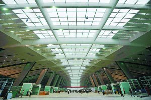 今天早晨記者探訪新北京南站,發現新建筑大氣、壯觀的現代化風格已經整體顯現。與傳統火車站方方正正、候車空間封閉的形象迥然不同,相比之下,新南站建筑更像機場航站樓;視野通透、裝飾風格簡潔明快。9米高的高架候車大廳白天不需要燈光照明,陽光透過屋頂采光帶傾瀉下來。