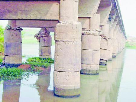 非法采沙,致使橫跨大橋橋墩下陷,橋成危橋。
