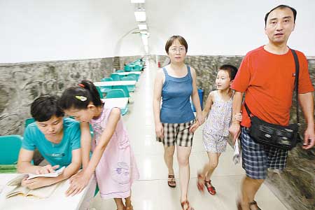 沒有風(fēng)扇,不用空調(diào),昨日下午,11歲的李翹小朋友涼涼快快地在室內(nèi)做著暑假作業(yè)。原來,她和幾個(gè)小伙伴一起,來到了作為人防納涼中心的安東街防空洞里,成為防空洞開放首日迎來的避暑市民之一。