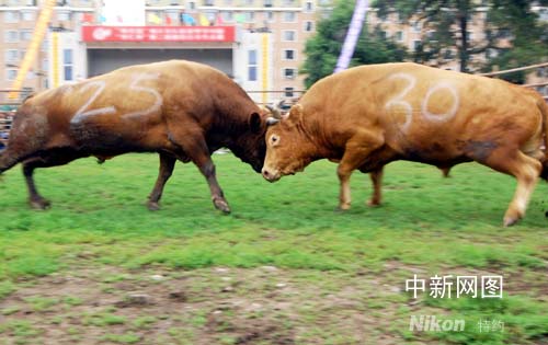 中新網(wǎng)延邊7月20日電 (秦俑)7月20日,吉林省延邊朝鮮族自治州“圖們江斗牛大賽”在圖們市舉行。共有來(lái)自全州8個(gè)縣市的200多頭“延邊黃牛”參加了角逐。