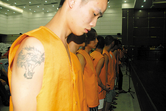 只要加入這一團伙,成員都要在身上文上狼、鷹等圖案;在樂清當(dāng)?shù)匾惶崞鹪摻M織的名字,老百姓都會恨得咬牙切齒——昨天,樂清市人民法院開庭審理了特大涉黑組織“狼狗隊”,這個涉黑組織41名成員都非常年輕,大部分是1985年后出生,其中10多名成員未滿刑事責(zé)任年齡,最小的一名年僅17歲。