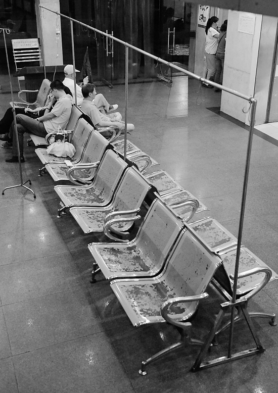“我去之前先打聽了一下,說要排10多個(gè)小時(shí)的隊(duì),掛號的人都聚集在醫(yī)院急診的抽血化驗(yàn)候檢室,那里有椅子可以休息。”陳女士在下午5點(diǎn)半左右來到醫(yī)院,候檢室里已有十來個(gè)外地模樣的人等著了,三三兩兩,有男有女。