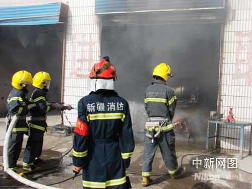 據巴州焉耆中隊消防人員介紹,當日19點49分一名群眾求救,焉耆縣天山加油站對面一汽車維修中心天然氣罐爆炸,正在維修的小轎車被引燃。巴州焉耆消防中隊迅速出動2輛消防車12名消防人員緊急趕赴現場進行處置。