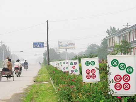 “見過門牌號,但像這樣的門牌標志還真是少見。”昨日,蔡女士在河北趙縣看到許多“麻將”形狀的燈箱后說。這些燈箱位于趙縣通往趙州鎮(zhèn)的一條小公路旁,引起了路人極大的興趣。