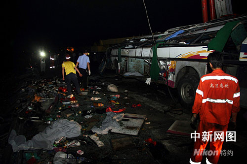 杭甬高速公路一大客車翻車 5人死亡3人重傷(圖)