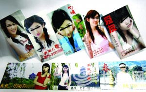 孫朱夫婦買了十多張手機卡和十多只小靈通。找了家地下作坊,花600多元,制作了1萬余張印有漂亮女孩的招嫖名片。