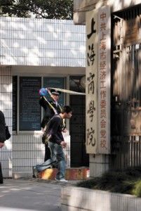 11月14日,上海商學院宿舍樓發生火災后,學校門口拉起了警戒線