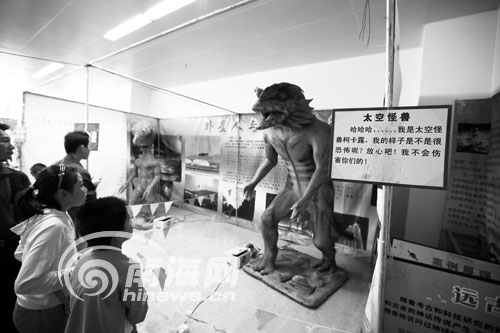 學生在參觀“太空怪獸”