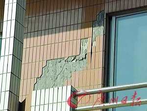 據悉,最近一個月,黃岐二中教學樓南樓突然出現了大面積的墻體脫落、瓷磚爆裂及墻體、地板出現裂縫現象,而且有越來越嚴重的情況出現。得知該事件后,南海區以及大瀝鎮的有關領導多次到該校了解情況,經專業機構對出現裂紋的建筑物進行勘測認為,該大樓暫不適合使用,并宣布從今天起暫停使用,直至修復完畢,并檢測安全后才可繼續使用。