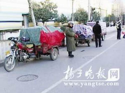 記者聞訊后,隨即趕到現(xiàn)場,3輛“馬自達(dá)”被交警攔停在路邊,“馬自達(dá)”車主一直在向交警訴苦,讓交警放他們一馬。“馬自達(dá)”都是安徽牌照,車廂被油布包裹嚴(yán)實(shí),掀開油布,里面猶如臥鋪車廂,鋪著厚厚的被子,幾個人鉆在被窩里聊天。據(jù)“馬自達(dá)”司機(jī)劉某說,他和另外兩名司機(jī)是很要好的老鄉(xiāng),他們都是安徽黃山市歙縣人,近幾年一直在江蘇溧陽打工,主要是幫建筑工地拖運(yùn)垃圾。大家在溧陽呆得時(shí)間長了,小孩們也在當(dāng)?shù)厣蠈W(xué)。春節(jié)將至,他們預(yù)備早點(diǎn)回家過年,可溧陽是個小城市,沒有直達(dá)他們老家的客車,他們便到常州市區(qū)買票。他們本想坐火車到黃山市,然后轉(zhuǎn)車去歙縣,可沒想到排隊(duì)兩個多小時(shí),等來的卻是“票賣空了”這句話。隨后,他們又急忙趕到常州汽車站買票,還是沒買到票。無奈,他們只好回暫住地另做打算。