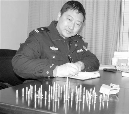 昨日上午,記者在西河派出所見到了這些子彈,包括那枚已被砸爛的子彈在內,大大小小共有56發子彈,還有幾枚沖鋒槍專用子彈。西河派出所副所長張永稱,這些子彈都還可以使用,危險性高。據介紹,太婆老伴去世已經12年了,多年來,老人將這些子彈藏在家里箱子底層,聽說民間偏方可用彈藥治肚子痛,才從箱底翻出這些子彈,用鉗子又夾又砸,取出彈藥,還沒服下就被鄰居舉報。(唐海龍 蘇定偉)