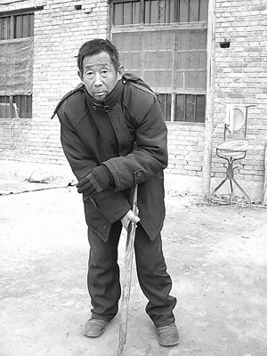 不顧家人的多次勸阻,65歲的吳述勛拄著棍、拖著傷腿吃力地站在自家的屋門前。聽說記者要來采訪,他堅持在屋外等候。這是記者前幾天到原陽縣福寧集鄉東程寨村采訪時見到的情景。