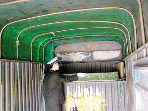 執(zhí)法人員進一步檢查,驚奇地發(fā)現(xiàn)該貨車車廂改裝成了一個小鐵屋,車廂內設有3張席夢思改裝成的6個臥鋪座位。
