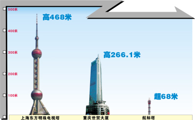 長江重慶航道局航道處處長何波透露,規劃中的“世界第一塔”實際上是“內河第一塔”,他表示,只要相關部門支持,航道部門計劃投資近千萬元,在江北嘴兩江交匯處占地10畝建設這個塔。建成后,將申請吉尼斯世界紀錄,為重慶爭光。