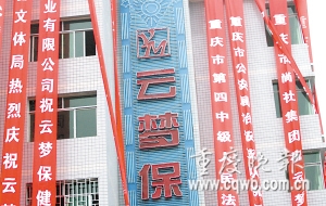 昨日凌晨6時許,記者從秀山火車站乘出租車前往縣城,途經當地“民營經濟一條街”內的云夢保健城時,發現雷人一幕:至少30條長約20米的祝賀條幅高高掛著,其中竟有“重慶第四中級人民法院”、“秀山縣文體局”等政府部門五六家。