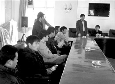 患兒家屬正在與薊縣衛生局負責人談判。記者劉薇攝