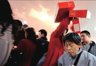 昨天上午9點,在東城區王府井工美大廈奧運特許商品旗艦店門外,上百名市民在門口排起長隊準備搶購,隊伍最長排出數十米。上午9點30分,工美正式開始營業,門口排隊的市民一下涌進商場,十余名工作人員在一旁維持秩序。
