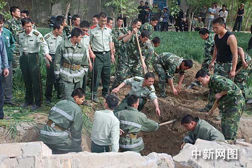 據(jù)悉,當(dāng)日和田市迎賓路一建筑工地5名民工對(duì)工地圍墻進(jìn)行加固。這些民工使用鐵鍬、十字鎬等工具對(duì)圍墻根部進(jìn)行作業(yè)時(shí),圍墻突然倒塌,除一名距離較遠(yuǎn)的民工當(dāng)場(chǎng)逃離外,其余4名民工全部被坍塌的圍墻掩埋。