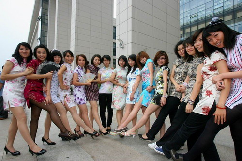 女生穿著溫婉的方襟旗袍,男生一襲唐裝溫文爾雅……廣州大學新聞學院學生的畢業留影,被貼上網后,成為近日各網站論壇的熱點。“每年拍畢業照都穿西方學士袍有點老土,大學生決定搞搞新意思。”但選擇“短旗袍”,有人指責太暴露,有辱斯文。網友們卻認為這指責未免太“上綱上線,極度無聊。”