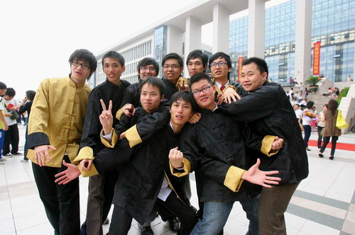 這組畢業照片,說明是廣州大學新聞學院畢業留影,看得出來是在教學樓前拍攝的,十幾個女生穿著長短不一的旗袍,手拿扇子或鮮花,一字排開,伸出腿擺造型,男生則穿著唐裝拍照。有集體合影,也有搞怪的照片。“潮爆的大學生決定搞搞新意思,讓象征中華文化的唐裝定格人生最重要的瞬間。”帖子介紹:以往師兄師姐拍畢業照總是清一色的西方學士袍,于是有女生提議,不如女生穿旗袍男生穿唐裝,得到全班同學熱烈響應,并為班主任購買了唐裝一同合影。
