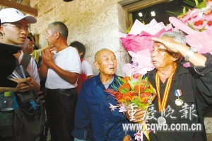 原來,為照顧老人身體,車速行進較慢,回鄉行程被迫拖延了一個小時。從緬甸全程陪同劉老回鄉的華西都市報記者介紹,前日傍晚從昆明飛抵成都后,老人就迫不及待地想連夜回鄉,被組織者婉拒后,老人昨晨5時許就醒來,一直在細細整理自己的衣褲和獎章;大家本想在中途午餐,但老人很執著:回家的第一頓飯,一定要和家人一起吃。