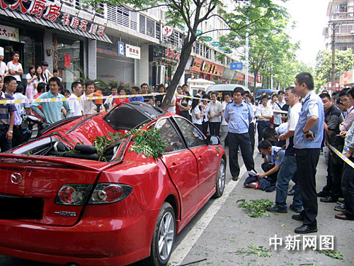 據現場目擊者介紹,墜樓者是一名女性,年齡大概在30歲左右,墜樓時剛好被樹擋了一下,落在一輛紅色轎車上,當時還有一些意識。
