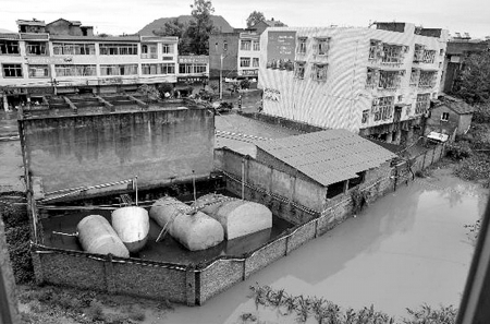 2009年6月19日8時許,四川省閬中市老觀鎮(zhèn)加油站因近日連降大雨,導(dǎo)致加油站附近排水系統(tǒng)阻塞,致使周圍大量雨水涌入油罐池。分別儲存柴油32噸、93汽油10噸、90汽油10噸的4個油罐上浮移位,其中一個發(fā)生傾斜,連接油罐的輸油管道在浮力作用下斷裂,引發(fā)罐內(nèi)油品泄漏。