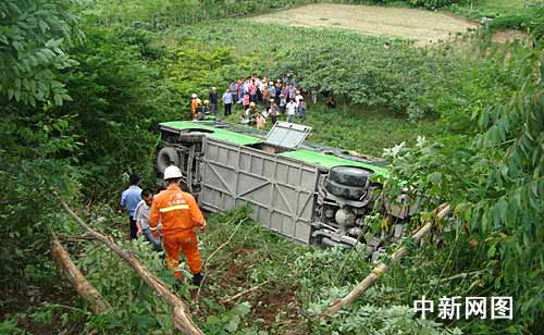 事故現(xiàn)場(chǎng),一輛從廣東順德開(kāi)往玉林方向的臥鋪車側(cè)翻在公路路基下,客車擋風(fēng)玻璃嚴(yán)重破損,左側(cè)車箱變形。現(xiàn)場(chǎng)指揮員根據(jù)情況,迅速協(xié)調(diào)交警封閉事故現(xiàn)場(chǎng),設(shè)立警戒區(qū),疏散交通。消防救援人員分成兩組,一組協(xié)助急救中心人員搬運(yùn)傷者,另一組人破拆車門和車窗進(jìn)入車內(nèi)救援。部分輕傷乘客在消防官兵引導(dǎo)下自行走出,消防官兵隨后深入車廂內(nèi)部,在車廂后半部找到被行李壓住的5名傷者。消防官兵搬開(kāi)壓于被困者身上的物品,并成功疏散出車體移交醫(yī)護(hù)人員處理。
