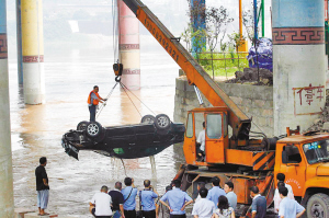 死里逃生的熊林準備報警,卻發現手機、錢包全都在車上。他只好一路掙扎著回到天星橋附近的家中,將父母叫醒。通過114,熊先生聯系到幾家打撈公司,但“他們都要8點半才上班”。凌晨3點,一家人趕到事發現場,但面對江水一籌莫展。此時磁器口水上派出所民警和消防官兵也趕到,但施救未果。直到清晨7點,才找到3艘漁船打撈。
