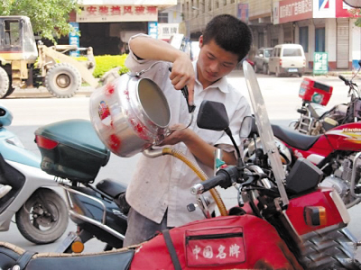 網(wǎng)友“墜入情海”在帖子中稱,該加油站位于開縣移民新城南山中路。“最牛的就是用一個大水壺給摩托車加油”。加油站準備了幾個大水壺,壺嘴上都安上一節(jié)水管,每個水壺連壺蓋都沒有。摩托車司機需要自己拿水壺到加油機前打油,加油站工作人員也不管。發(fā)帖者說:“汽油是一種很容易揮發(fā)的物質(zhì),但壺口是敞開的,在加油過程中,大量的汽油極易揮發(fā)出來,加油站彌漫著一股刺鼻的汽油味道,存在著嚴重的安全隱患。”