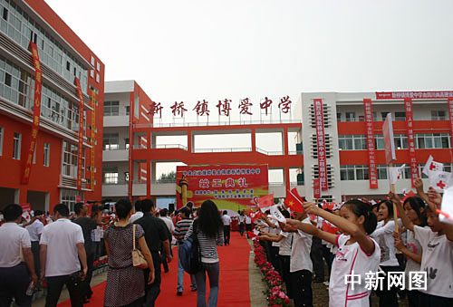 中新網(wǎng)綿陽9月8日電(霍潺)中國航空工業(yè)集團公司通過中國紅基會“中央企業(yè)援助基金”捐資1000萬元人民幣援建的綿陽市游仙區(qū)新橋博愛中學8日竣工。在紅白相間的新教學樓前,同學們揮舞著手中的五星紅旗和中國紅基會會旗,齊聲唱著愛的奉獻,感謝社會的無私關愛。