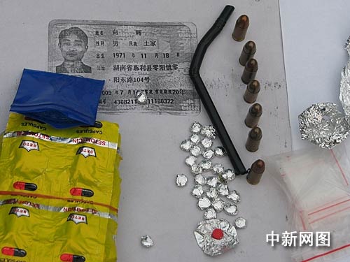 中新網長沙9月16日電 (歐陽浩亞 佘飛) 9月15日凌晨,一輛途經湖南境內長常高速公路的小車因司機操作不當撞向了中央隔離護欄,這原本是一起普通的車禍,但高速交警在處理事故過程中卻發現了重重疑點,民警當即對事故車輛和人員進行檢查,竟搜出了手槍子彈、毒品、吸食工具等物品。