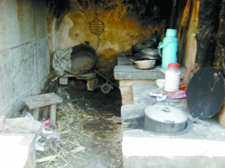 老人有關(guān)節(jié)炎,但一家的重?fù)?dān)都?jí)涸谒缟稀@顝V的老伴去年冬天下山采購(gòu)年貨時(shí)摔倒了,摔傷了頭和胳膊,除了基本的自理外,已經(jīng)不能做重活了。因家庭貧困,沒(méi)錢(qián)買(mǎi)更好的藥,現(xiàn)在老伴主要靠吃一些止痛藥來(lái)遏止病痛。殘疾智障的兒子更需治療。他們?cè)谏巾敱俪龅娜齼僧地,已無(wú)法養(yǎng)活這個(gè)家。