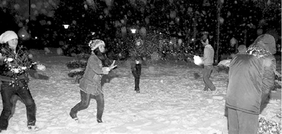 在一片寒暄和自我介紹之后,“光棍節”打雪仗在幾個“調皮”網友的偷襲下,開始了。雖然都互相不認識,可是大伙都不客氣,你砸我一團,我砸你一團,一會兒就熱鬧起來。