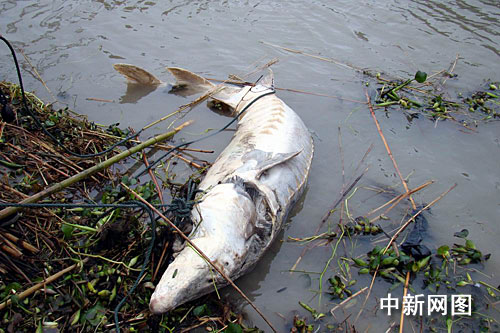 中新網武漢11月29日電 (黃俊鵬 鄭北川 徐金波)一頭長度3.09米、重約200公斤、年齡約20歲的死亡中華鱘29日在湖北咸寧江段被發現。