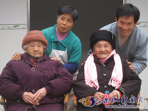 樂山市中區青平鎮傳有一段佳話:寶興村的王云清大孝感天,贍養的兩位百歲母親因此福壽延年,身康體健。母親李叔華,94歲,岳母李玉容,100歲,兩位壽星竟同降一屋。12年來,這對親家母在子孫們的供養下形同姐妹,朝夕相處,盡享天倫之樂。