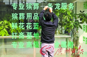 昨天開始,廣州市民政部門會同市公安、交委、衛(wèi)生、工商、物價等部門展開兩天的聯(lián)合行動,集中整治殯葬服務代理市場。檢查中發(fā)現(xiàn)殯葬服務中介公司多打出提供“一條龍辦喪服務”的口號。殯管部門表示,這是違規(guī)而且也是不可以做到的。同時,對于殯葬黑中介“宰”喪主這種雪上加霜、有背社會公德的行為,殯管部門將堅持打擊。