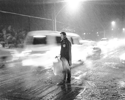 休假,路遇堵車,主動在大雪中疏導交通近1小時。昨日,市民劉女士致電本報,希望能尋找到這位敬業的警察。