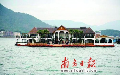 近日,深圳南澳東山灣一棟面積多達7000平方米,耗資近億元的海上別墅存在五六年之久,卻一直沒有取得海域使用權證,被指是一棟“海上違建”(見上圖)。昨天下午,該別墅主人郭奎章在其“海上皇宮”內首次公開回應媒體,稱該別墅是省海洋部門同意的旅游試驗項目,不屬于違法建筑,也不可能拆除。