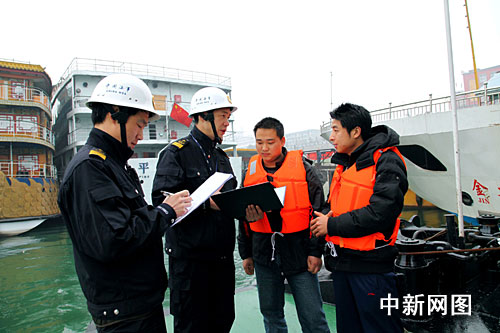 宜昌海事執法人員檢查進川客船船員證書。作 者:望作信