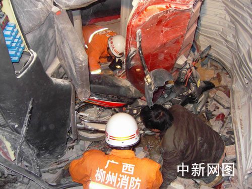 消防官兵在營救被困司機。李建明 攝