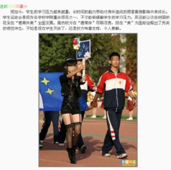 昨日,國內有媒體報道,一名高中女生在學校體育節上穿黑絲吊帶襪,并引來網友熱議。據悉,被網友冠以“黑絲女”之名的女生是石家莊一中高二11班的引導員。有網友認為這是美育德育的失敗。但也有一些人認為,批評者反應過度。