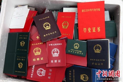 中新網舟山4月4日電(記者 趙曄嬌 通訊員 夏方)2日中午,浙江舟山市定海警方搗毀一特大造假證窩點,繳獲數千本半成品假證件,涉及駕駛證、結婚證、房產證、軍官證、健康證、運輸證等30多個種類,可謂包羅萬象。其中,以各類學歷證書、英語等級證書出貨量最大。