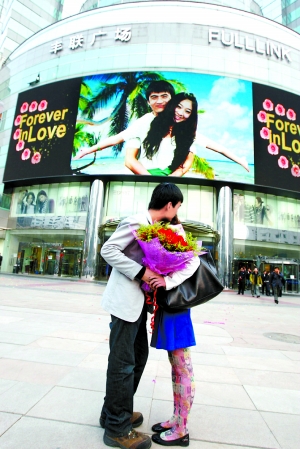 婷婷的男友田新營告訴記者,他比婷婷年長兩歲,來自山東,和婷婷是通過朋友介紹認識的。當時他剛剛辭了工作,正處于事業的低谷,可是婷婷并沒嫌棄,反而給了他無限的勇氣,后來他找到了新工作。田新營說,半年前他就一直在想以什么方式向婷婷求婚,有一天他從這塊大屏幕下路過,突然來了靈感。1個月前,他向商場請求,想通過大屏幕向女友求婚。商場覺得這是件好事兒,很爽快地答應了。于是就有了這段浪漫、溫馨的求婚現場。(于海波)