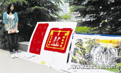 4月22日下午,在武漢光谷廣場(chǎng)的空地上,一名擺攤賣十字繡的美女大學(xué)生引起路人的關(guān)注。她在吆喝賣她的嫁妝,理由是為玉樹災(zāi)區(qū)獻(xiàn)愛(ài)心,不過(guò)一幅十字繡堅(jiān)持賣3.8萬(wàn)元,讓感興趣的人聽完直感慨,“這也太貴了吧!