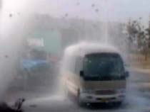 水管被撞當街噴射 小汽車扎堆洗澡發生追尾
