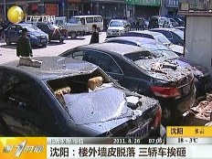 沈陽(yáng)一樓外墻皮脫落 樓下三輛轎車(chē)被砸癟